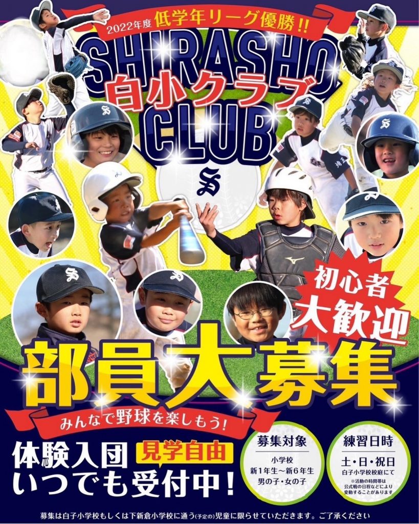 「白小クラブ」は埼玉県和光市の白子小学校と下新倉小学校に通っている児童の少年野球チームです。